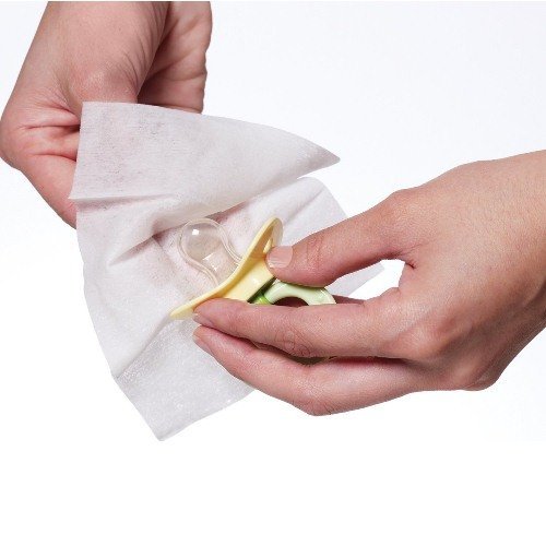Made with 100% food grade ingredients, this handy 36 pack of wipes safely cleans baby's pacifiers, bottles, cups, and teething toys. These alcohol free wipes measure 4" x 6". Perfect for use on-the-go.