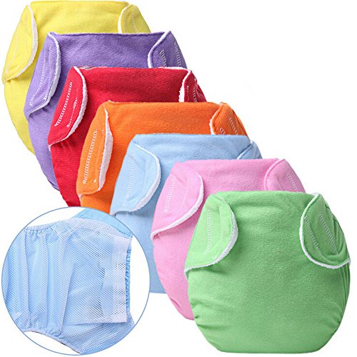 Design rich colors to choose fromCloth diapers can be a lot less work than they seem, and what you spend in time you can really make up for in cost. After all, if the average baby uses somewhere in the neighbourhood of 5,000 diapers, you don’t need a math degree to know that all those disposables are going to add up. Factor in an extra kid (or two) and resusable cloth diapers can save you a mountain of cash — and garbage.It doesn’t have to be all or nothing; many families use cloth diapers during the day but disposables at night. Before you settle on a set, we suggest trying a couple of each brand to see what works best for you. Be sure head to Mommy Gearest for some cloth diapering tips and tricks if you’re a first-timer.CSKB 7PCS Baby Reusable Washable Adjustable Baby Soft Cloth Diaper Nappy Toddler Dry Tender Care will help your job easier dexhighly Water-Resistant, Breathable and Very Durable.